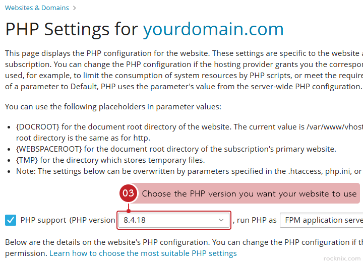 Running the right PHP version is important for both compatibility and performance. Some websites, CMS platforms, themes, or plugins require a specific PHP release to work properly. In Plesk, you can change the PHP version for your website in just a few clicks, which helps keep your site stable, secure, and compatible with newer technologies.