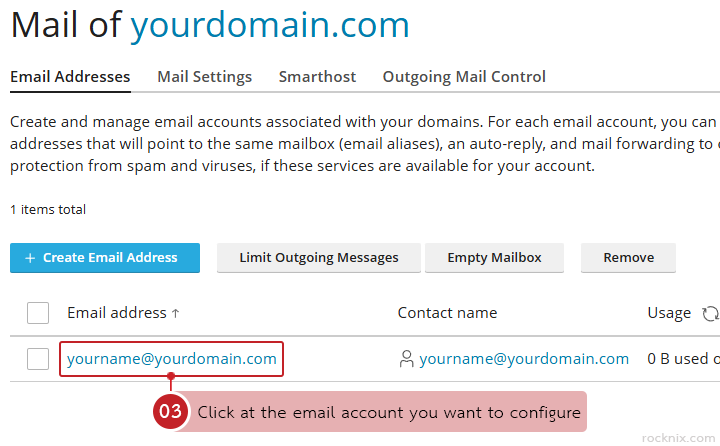Click at the email account you want to configure.
