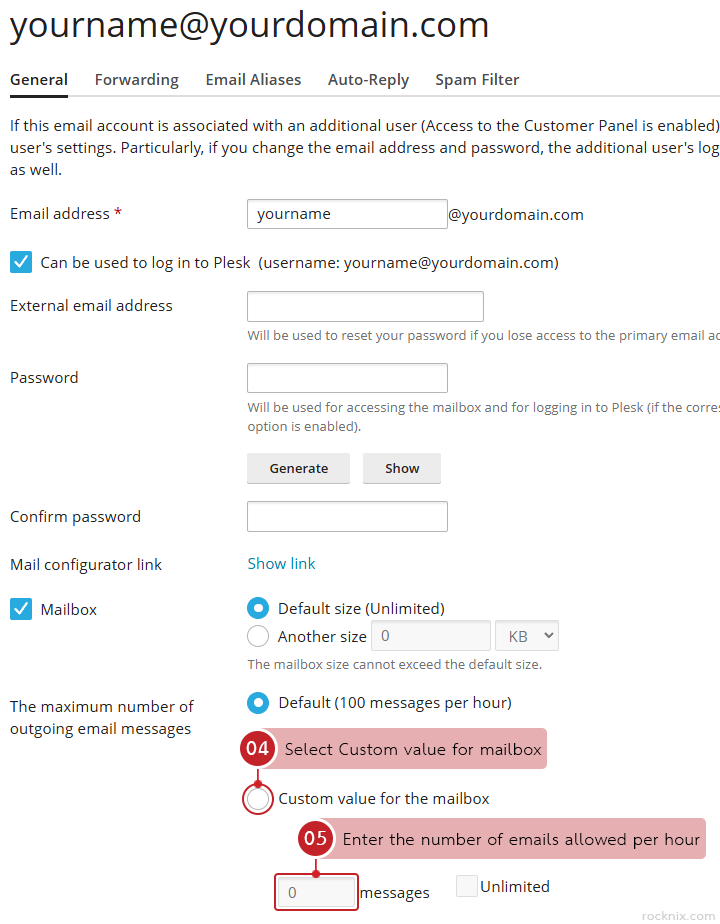 In Plesk, you can easily set a limit on how many emails each mailbox is allowed to send per hour. This guide walks you through the process step by step.